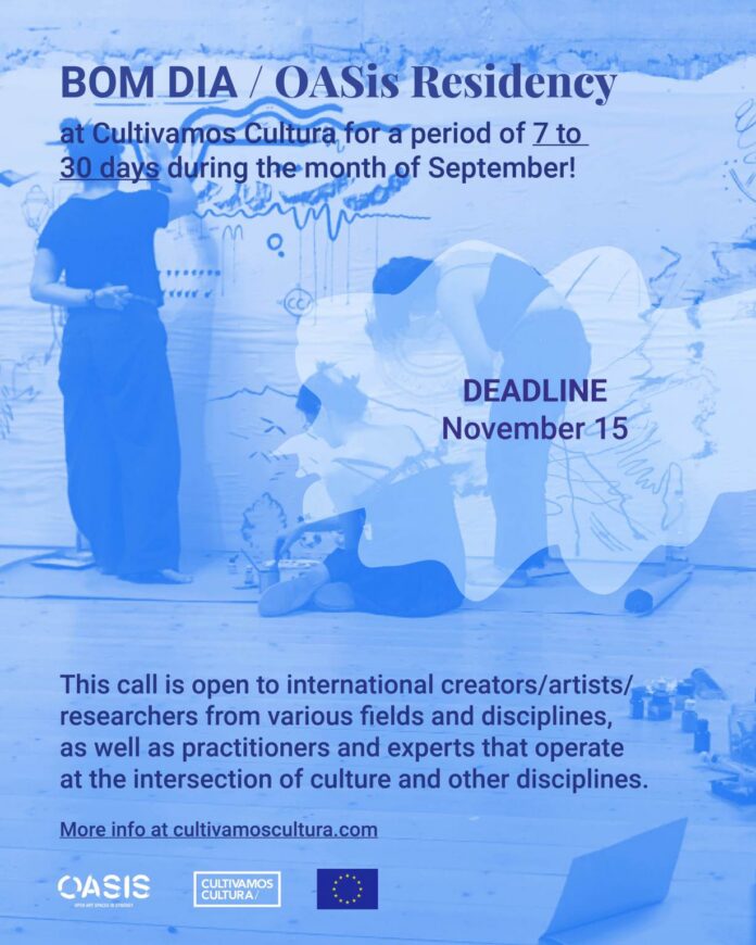 Pour 2026, une proposition sera sélectionnée pour participer à la résidence OASis « Bom Dia », à Cultivamos Cultura, au Portugal, pour une période de 7 à 30 jours au cours du mois d’avril 2026.